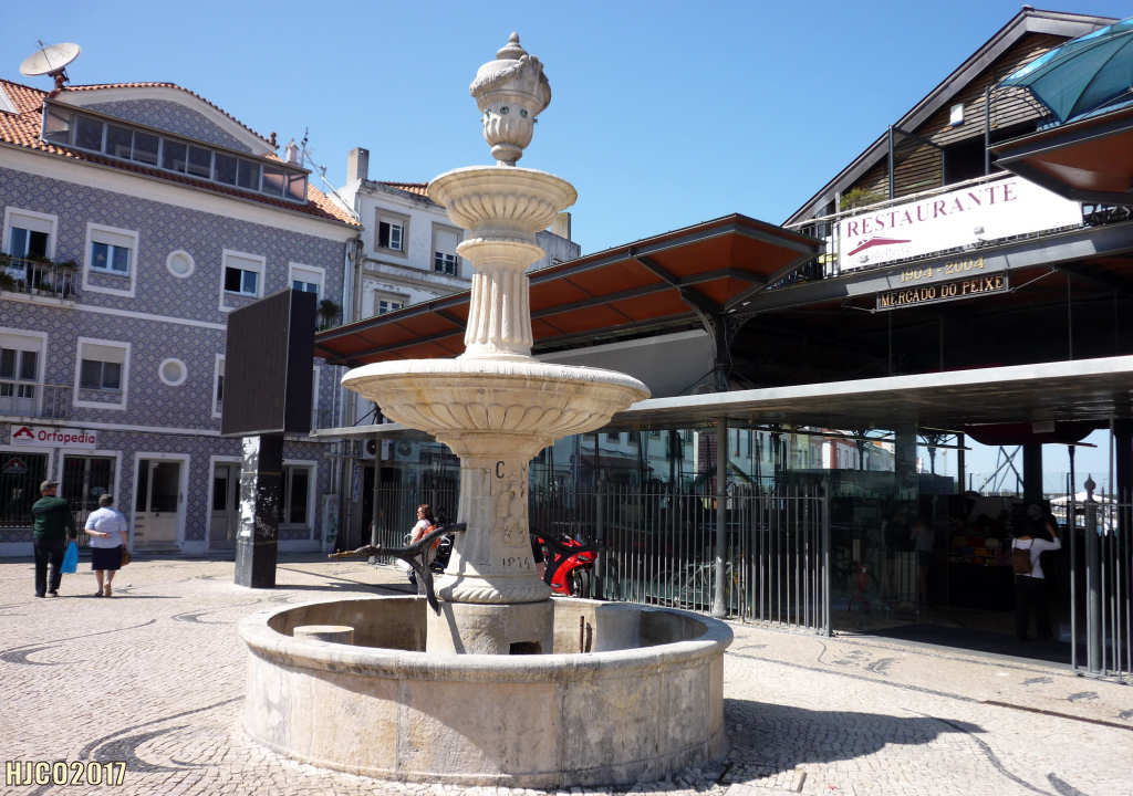 movimentadas da cidade de Aveiro. No coberto restaurado do Mercado do