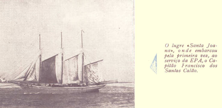 Conhecemo-lo quando das suas primeiras viagens no arrastão «Santa Joana». A sua primeira viagem, sob a flâmula da E. P. A., foi feita em 1935, no lugre «Santa Joana», que veio a naufragar em 12 de Julho do mesmo ano. Fez, depois, duas viagens no lugre «Santa Isabel», em 1936 e 1937, iniciando, em 1938, a primeira viagem de arrosto, no «Santa Joana», onde se conservou até 1946.
