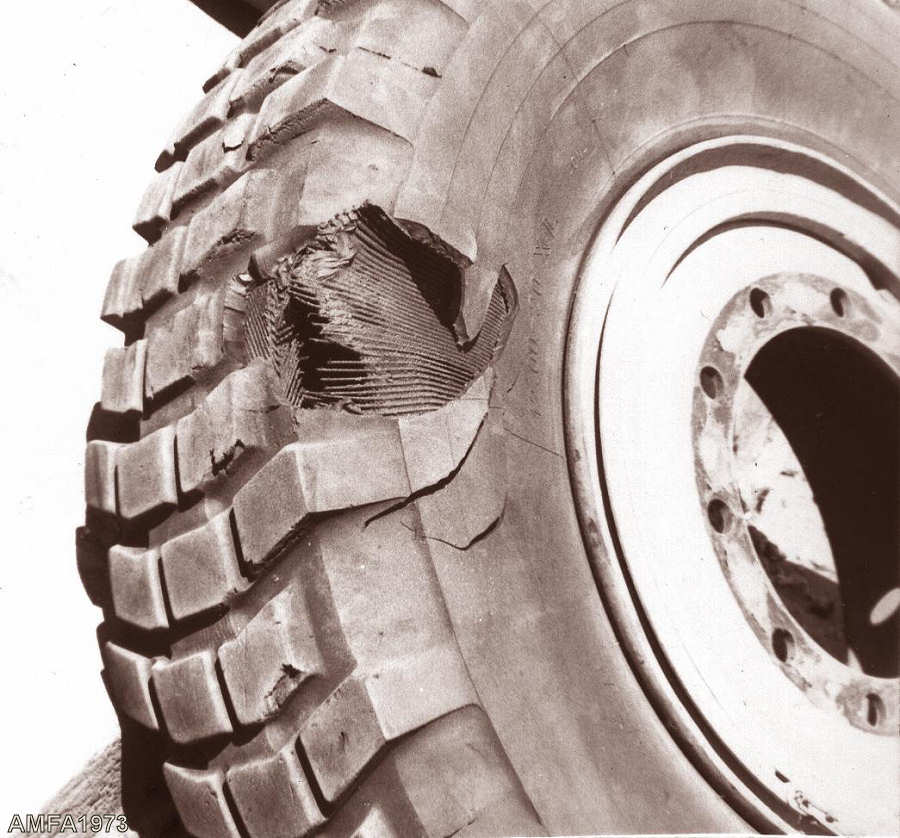 No apoio ao Sagal houve uma roda de uma viatura que passou sobre uma mina anti-pessoal, ficando com um buraco.