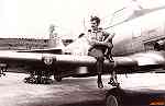 O dono das fotografias sentado na asa de um aparelho T6 já municiado.