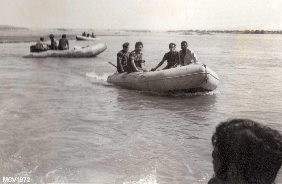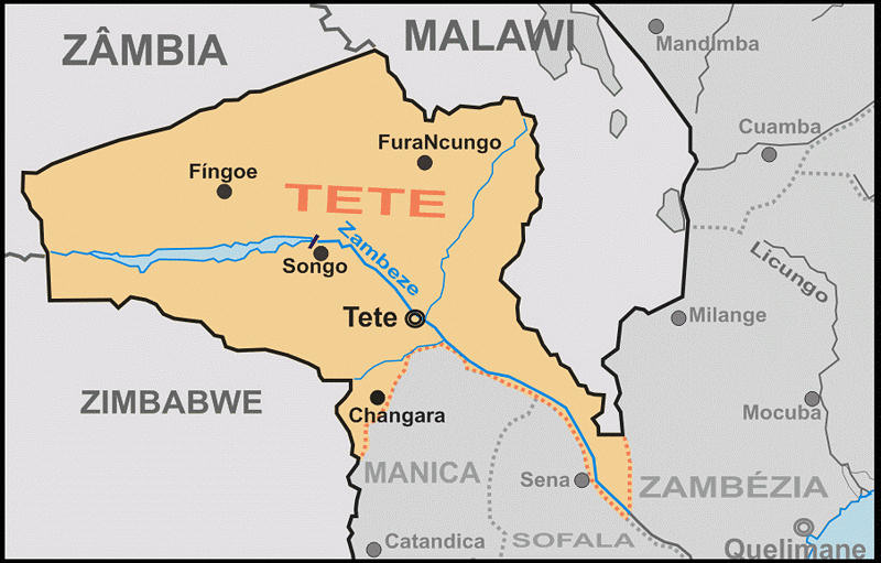 operação no Rio Zambeze. Ao fundo, a ponte sobre o