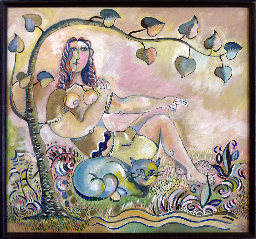 13.Menina dos girassóis - Óleo s/ platex - 65x60 cm   14.Meditação - Óleo s/ platex - 68,5x74,5 cm
