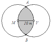 O conjunto dos pontos correspondente a intersecção de dois círculos de raio 10 m e cujos centros distam 10 m.
