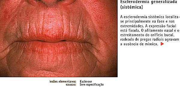 ESCLERODERMIA SISTÉMICA GENERALIZADA/SÍNDROMA DE CREST (eritema e aranhas vasculares).