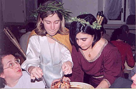 Seguiu-se um rolo de carne com puré, à moda do Imperador Cómodo. Rojões com arroz de passas reforçaram o menu, que terminou com tijeladas de ovos e se fez acompanhar pelo «mulsum», uma bebida tradicional de então, uma mistura de vinho e mel.