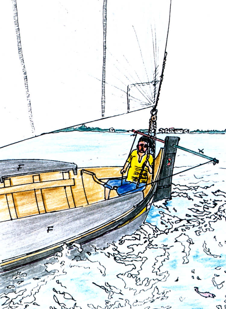 com as velas desfraldadas, ilhas, cabedelos, canais, esteiros, marinhas