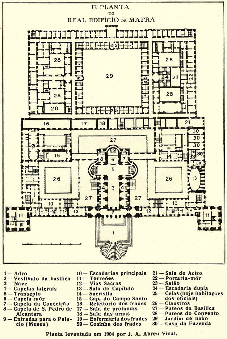 Planta do Real Edifício de Mafra, levantada por J. A. Abreu Vidal em