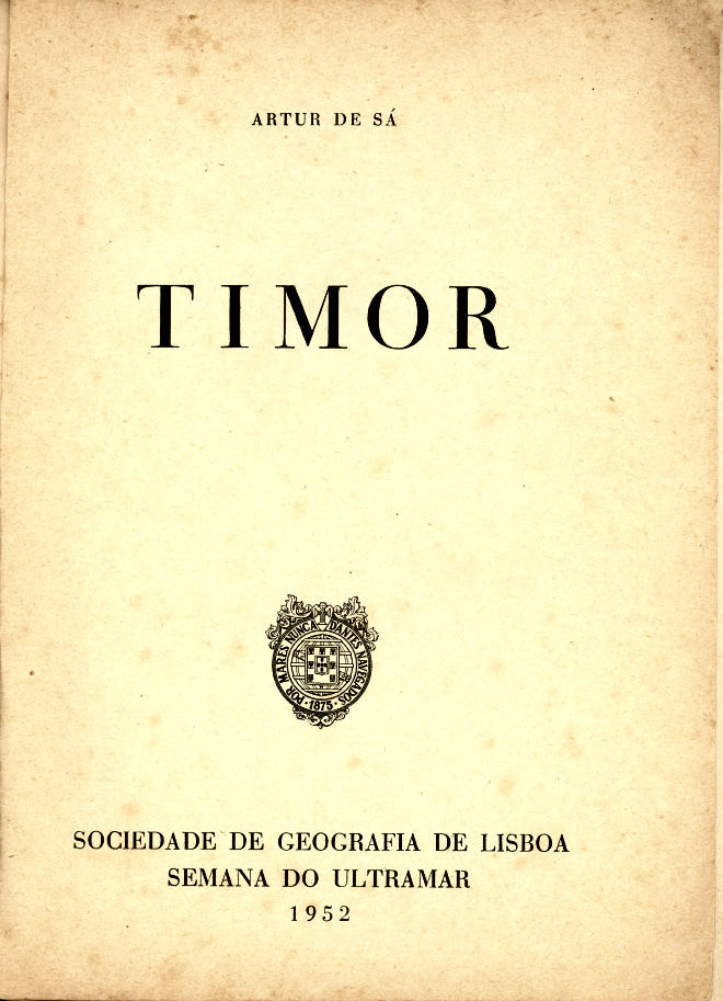 Artur de Sá, Timor, Sociedade de Geografia de Lisboa. Semana do Ultramar, 1952, 84 págs.