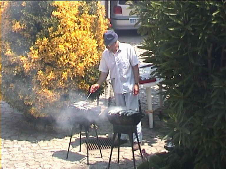 Já reinava grande azáfama, com o dono da casa a tratar da saúde às sardinhas.